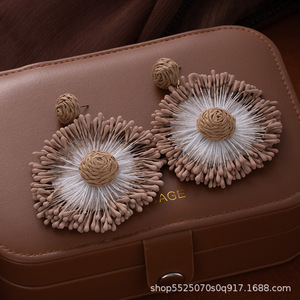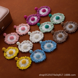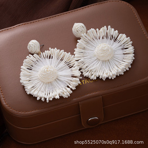 ボヘミアンハンドメイドひまわりラフィアイヤリング海辺の個性誇張された大きな花のイヤリング雰囲気イヤリング