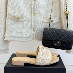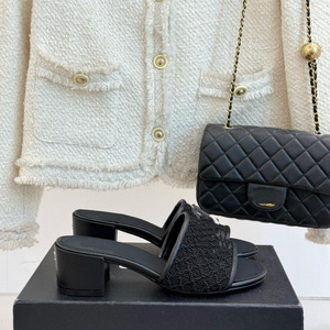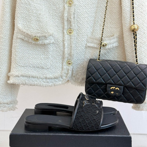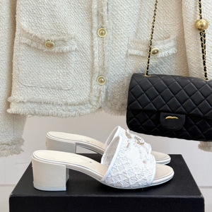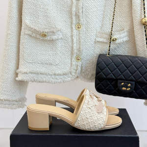 Ding 2025 新しいスタイルの小さな香りの本革刺繍太いヒールオープントゥミッドヒールラウンドトゥスリッポン女性の夏のアウターウェアサンダル