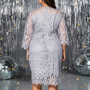 2025 ヨーロッパとアメリカのクロスボーダー太った女性のドレス刺繍二層無地ラウンドネック外国貿易大きいサイズの気質ドレス夏