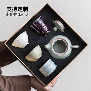 紫禁城の文化的で創造的な5つの有名な窯、1ポットと4カップのティーセットギフトボックス、顧客、リーダー、長老へのビジネスギフト