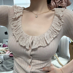 スポットスイート属性梳毛レース襟ニットトップ2025超人気年齢軽減トップカーディガンツーウェア薄手スタイル