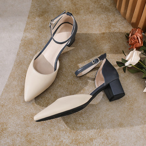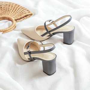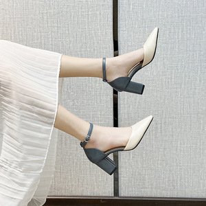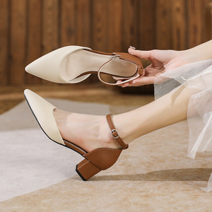 2025 新しい女の子のワンラインハイヒール学生中空妖精人気の黒包頭ワンラインバックルサンダル女性用