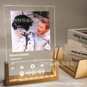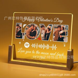 国境を越えた人気のアクリル木製ベース音楽写真ナイトライトバレンタインデーギフトカップル写真装飾品