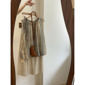 夏装搭配一整套韩版抽绳领口气质简约时尚条纹背心半身裙两件套夏