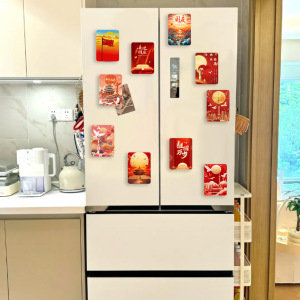 创意红色喜庆系列国庆文创纪念品磁吸贴 祖国生日水晶玻璃冰箱贴
