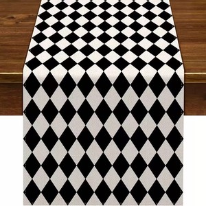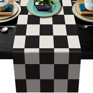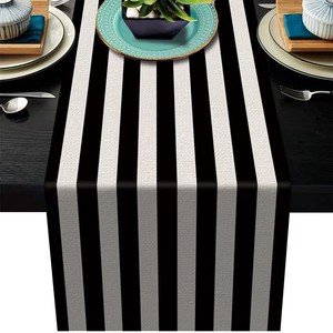 Amazon 新しい幾何学的なストライプリネンモダンなシンプルな黒と白のチェック柄テーブルクロスプレースマット家の装飾テーブルフラグ