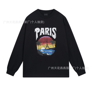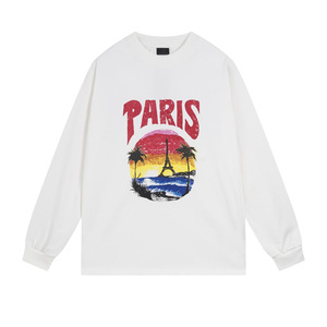 パリハイバージョン 25SS タワー ココナッツツリー サンセットプリント おしゃれ カジュアル デイリーウェア 半袖 スウェットシャツ Bホーム