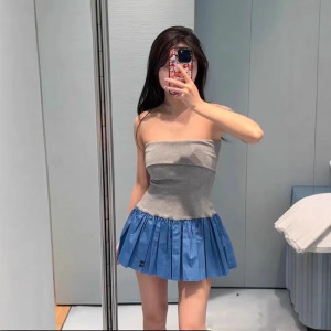 バックレスチューブトップドレス女性のための 2025 夏の新しいレイヤードホットガールデザインステッチニッチファッションショートスカートトップ