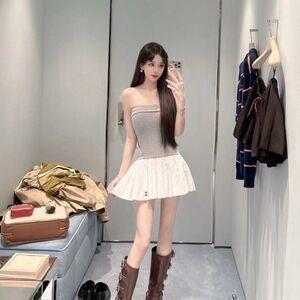 グレーと白のチューブトップスカート