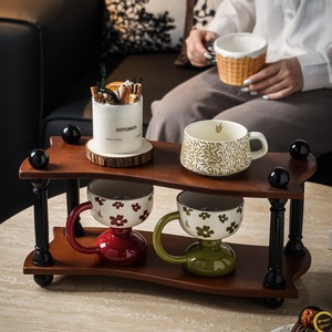 デスクトップ収納ラック無垢材アメリカンレトロウォールナット多層ホームコーヒーショップ高価値ハイエンド収納ラック