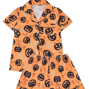越境貿易 ハロウィン レディース 半袖 ショートパンツ 欧米風 パジャマセット カーディガン 襟付き ホームウェア ゆったり 快適