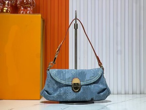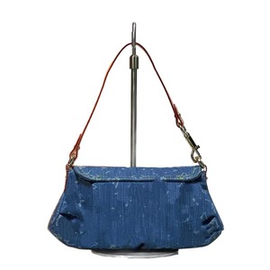 中古脇バッグブルーデニムデニムバッグ変色レザーロックショルダーバッグヴィンテージ小元宝脇バッグ