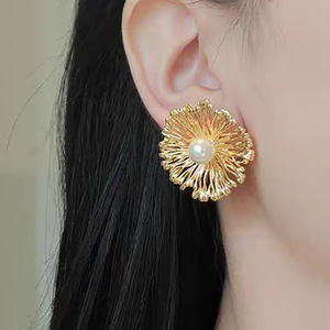 夏季高级感璀璨烟花珍珠花朵耳钉冷淡风镂空金属感耳环小众耳饰