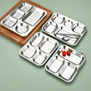 304 厚みのあるステンレス鋼の分割されたディナープレート子供の幼稚園の学生大人の食堂ファーストフードプレートレストランの皿