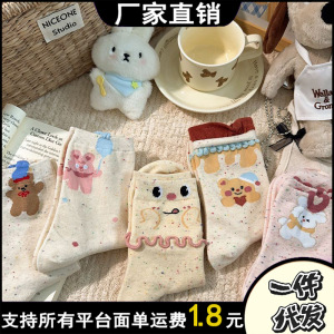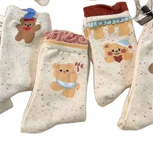 日本の甘いパイルソックス二層レースアイデア糸カレッジスタイルソックス女性漫画ラブベアミッドチューブソックス