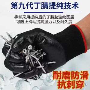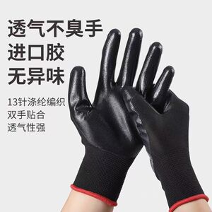 Luyidun N688 ニトリル増粘浸漬プラスチック手袋ナイロンニット通気性労働保護滑り止め夏薄いゴム工場