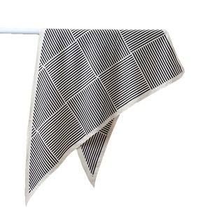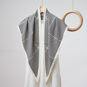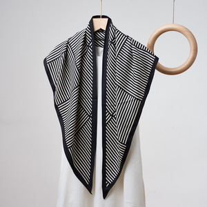 新しいシンプルな黒と白のラインプリント三角スカーフ衣類と模擬シルクベルト女性の多用途三角スカーフ