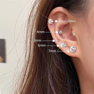 韩版夏季爆闪满钻锆石耳钉女睡觉免摘养耳洞耳骨钉百搭流行饰品