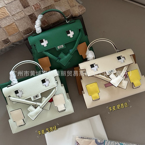 国境を越えた特別な本革モザイクミニケリーバッグ、高級牛革ポータブルスモールスクエアバッグ、女性用シングルショルダークロスボディバッグ