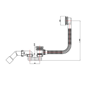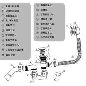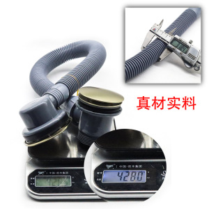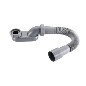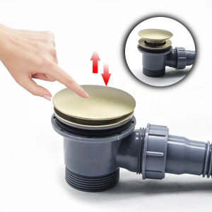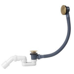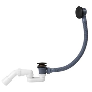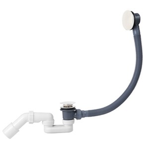 グレーのプラスチック製のバウンシングバスケット一体型浴槽排水装置セット、白い消臭ポット付き