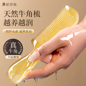 Niliya 天然本物のホーンコーム、女性の長い髪用、厚い脱毛用の特別なヘアスムージングコーム、家庭用静電気防止