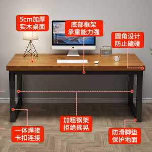 简约现代实木办公电脑桌台式双人书桌卧室家用北欧loft桌子工作