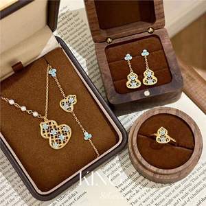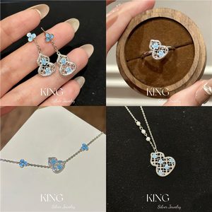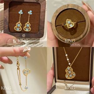エナメルブルーひょうたん | キングシルバージュエリー S925 シルバーゴールドメッキレトロライト高級リングブレスレットネックレスイヤリング