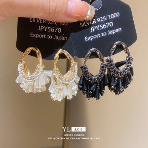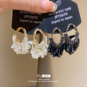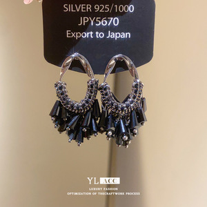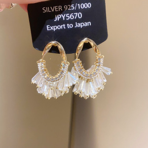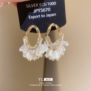 シルバー針ライト高級ガラスダイヤモンドオーバルタッセルイヤリングファッショナブルなヨーロッパとアメリカンスタイルの絶妙なハイエンドイヤリング女性用