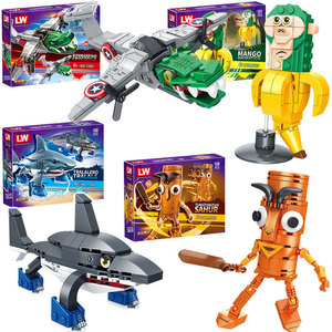 7259AI 山海経ビルディングブロック Tongtongge 木製スティック人形モデルランニングシューズサメブラインドボックス男の子組み立ておもちゃ