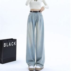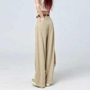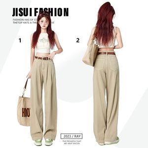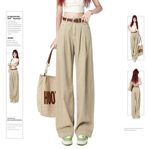咖色褶皱阔腿高腰牛仔裤女2025夏季新款宽松显瘦垂感休闲拖地裤子