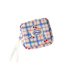 韓国版の大きなチェック柄の化粧品バッグ、見栄えの良い小さなチェリーの生理用ナプキン、ポータブルミニ収納バッグ、Bluetooth ヘッドセットバッグ