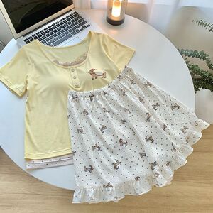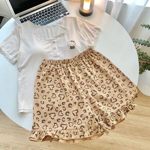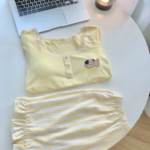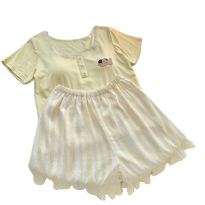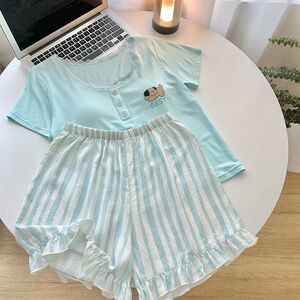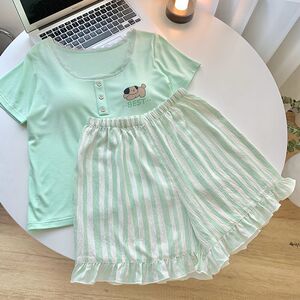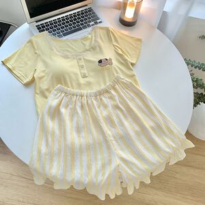 2025 新しい夏のモーダルパジャマ胸パッド付き女性のためのストライプ半袖ホームウェアセット