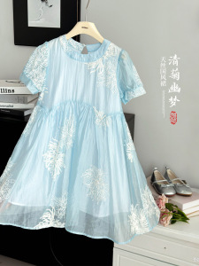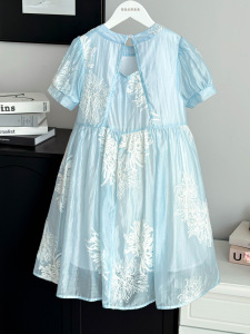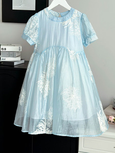 テンセル刺繍国民風ドレス 2025 新しい女の子ファッショナブルなプリンセスドレス子供の夏のファッショナブルなスカート子供服