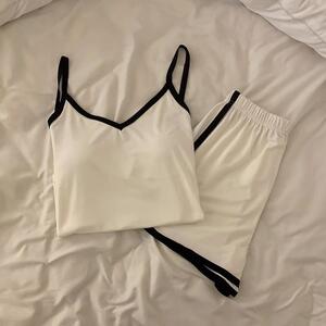 ins 韓国クールアイスシルクパジャマ女性の夏のキャミソール胸パッド付きシンプルな薄いスーツホーム服