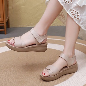 人気の女性用サンダル 2025 夏の新しいママの靴、柔らかい底、柔らかい表面、軽量、滑り止め、快適な中高年のビーチシューズ
