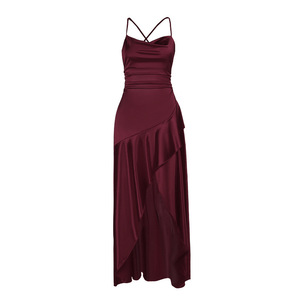 WQ25078PFO クロスボーダーフレンチロングスカート スリムウエストスカート 水玉スリムスモックスカート サスペンダードレス