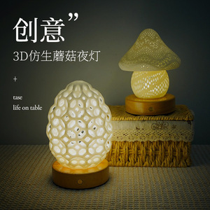 寝室のベッドサイド装飾テーブルランプ充電インクリームスタイルキノコランプ 3D 印刷タッチ調光ナイトライト研究