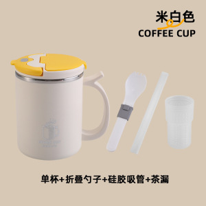 オフホワイトのシングルカップ+スプーン+ストロー+茶抜き