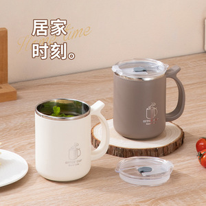 304 ステンレス鋼マグ水カップ蓋付きオフィスホーム断熱カップコーヒーカップティーカップ朝食カップ