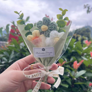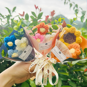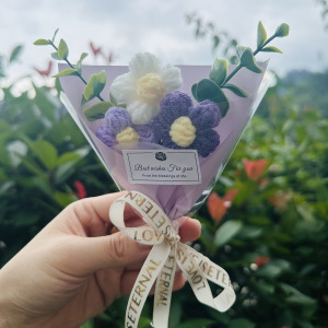 ニットパフ小花束、毛糸造花、記念品アクセサリー、メーカー越境卸売、アジサイ、ウェディングブーケ