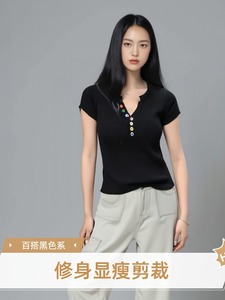 クロスボーダー韓国風カラフルボタンVネックスモールフレグランスセーターレディース2025夏新スタイル年齢軽減ファッショナブルでシックでスリム