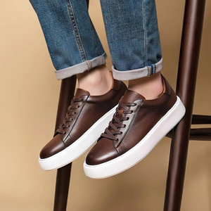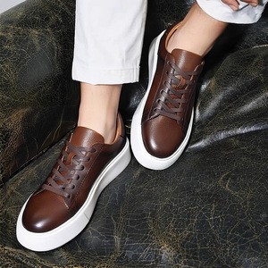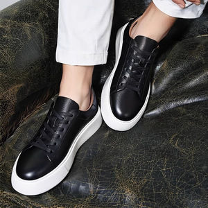 通気性のあるカジュアルレザーシューズメンズビジネス英国牛革多用途厚底本革白靴メンズスニーカートレンディな新しいスタイル