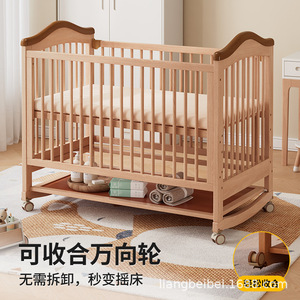 無垢材ベビーベッド、無垢材無塗装多機能クレードル、新生児用ヨーロッパスタイルベビーベッド、メーカー卸売