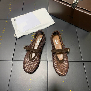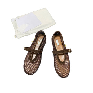 牛革バージョン~女性用本革バレエシューズ、浅口フラットシルバーシューズ、ニッチ中空網タイツシューズ、ワンラインサンダル