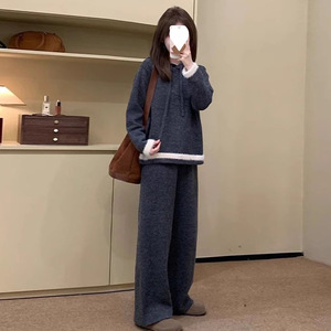 SheTiJia フード付き 2025 冬レイジースタイルスウェットシャツニットプルオーバーセーター + ワイドレッグパンツカジュアルスーツ女性のための