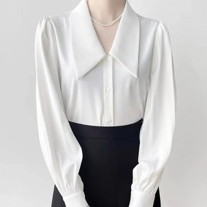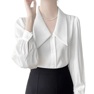 白シャツレディース秋新作長袖プロ通勤面接シャツフレンチスクエアカラー長袖トップ