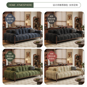 艾沃适 棉花糖沙发绿色法式复古风小户型客厅钢琴键直排布艺沙发