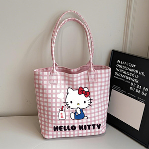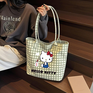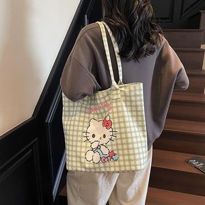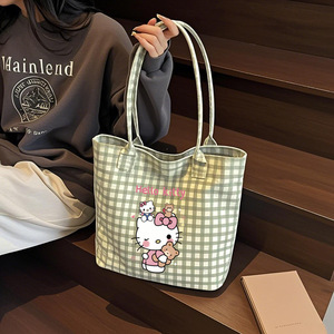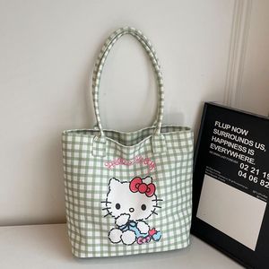 日本の漫画チェック柄キャンバスバッグ女性の夏の大容量円筒形バッグ多用途学生通勤学生クロスボディバッグ