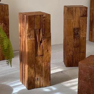 老榆木木墩客厅复古高墩侘寂风落地风化木头摆件实木花架装饰架