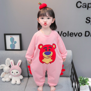 6003 ピンク長袖ストロベリーベアジャンプスーツ新しいスタイル